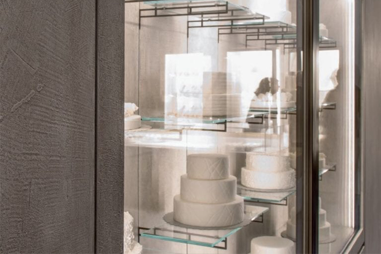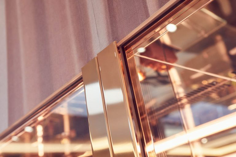 The tanks are monolithic and available in the following standard lengths: 2274 and 2997. The refrigeration is ventilated with a ceiling evaporator. The doors are sliding and coplanar; the interior walls are made of mirrored panels with magnetic hooking and can be customised in various finishes